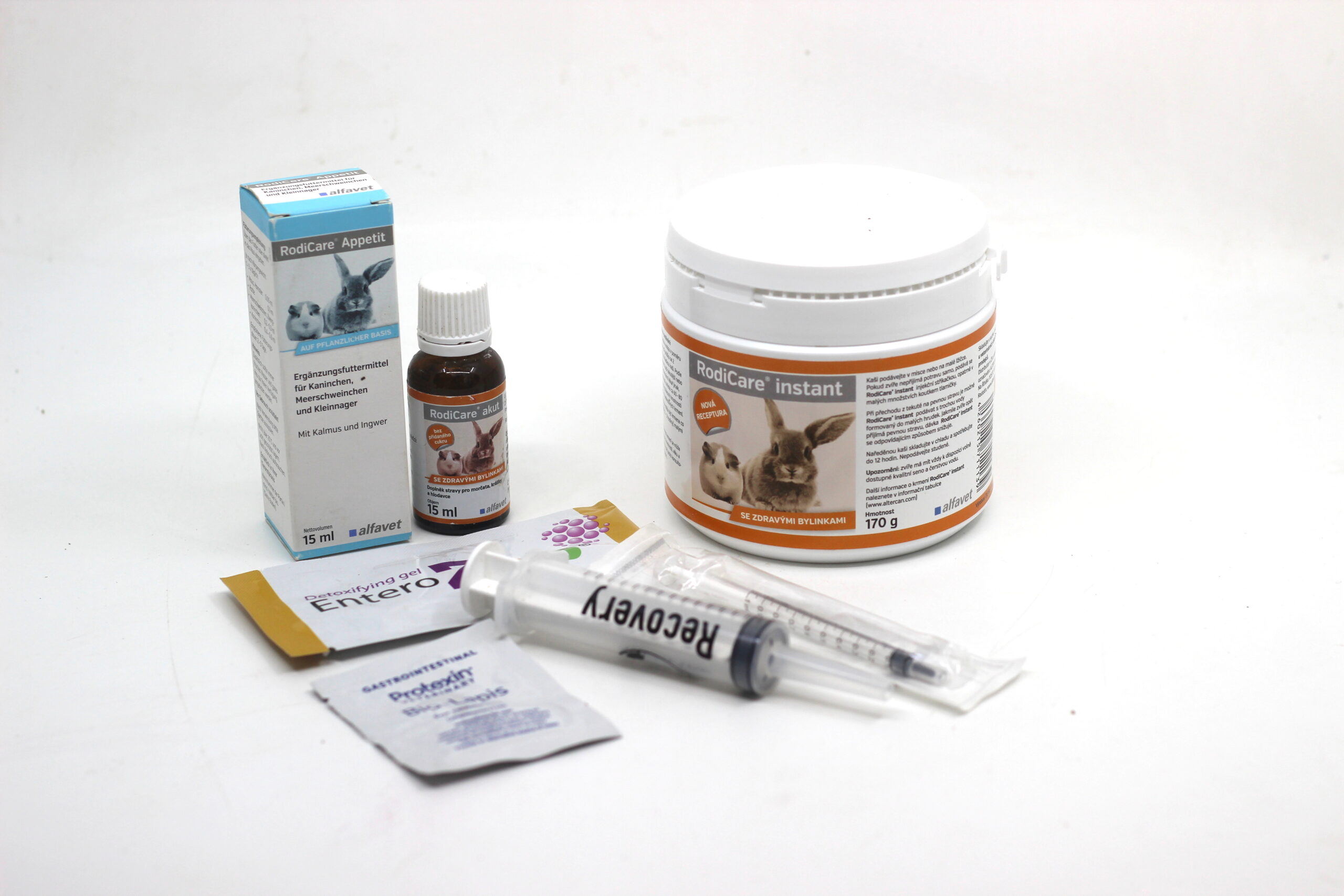 CAVY PLUS vychází z obsahu základní lékárničky, ale navíc přidává celou řadu přípravků RodiCare, které představují komplexní podporu trávení, imunity i celkové kondice morčete.